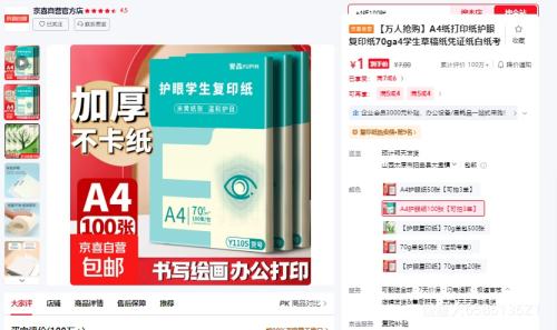 京东商城闭眼买:【万人抢购】A4纸打印纸护眼复印纸70ga4学生草稿纸凭证纸白纸考研学生用画画纸办公用品 A4护眼纸100张【可拍3单】