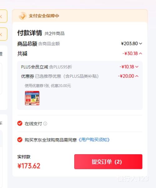 商品到手价173.62元(需购2件,合86.81元/件),下单2件。好价不错过,感兴趣的朋友可以试试!