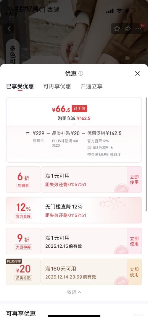 商品到手价66.5元包邮(需用券),根据小编提供的优惠信息(plus 限时加码好券160-20/5000-500/2000-200/480-60+满1打9折+满1打6折),下单1件。好价不错过,感兴趣的朋友可以试试!