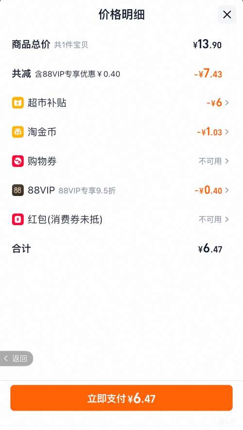 商品到手价6.47元+1.03元淘金币,根据小编提供的优惠信息(优惠券+如何使用淘金币抵扣),下单1件。好价不错过,感兴趣的朋友可以试试!