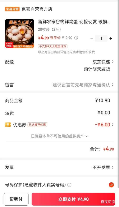 商品到手价10.9元(购券后4.9元),根据小编提供的优惠信息(微信小程序购券使用9-6元),下单1件。好价不错过,感兴趣的朋友可以试试!